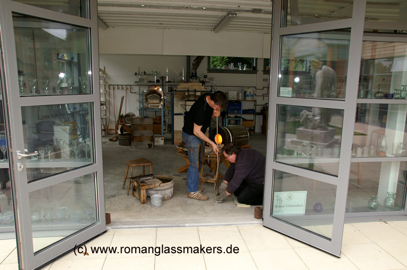 Diese sind von Mark Taylor (ROMAN GLASSMAKERS), François Arnaud (Atelier PiVerre), William Gudenrath (Corning Museum of Glass) oder Torsten Rötzsch (LWL Industriemuseum Glashütte Gernheim) am holzbefeuerten römischen Glasofen gefertigt worden. Für weitere Informationen siehe u.a. das Borg Furnace Project - BFP auf der Webseite www.glasofenexperiment.de.